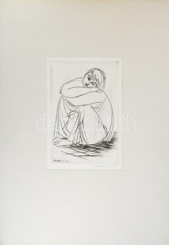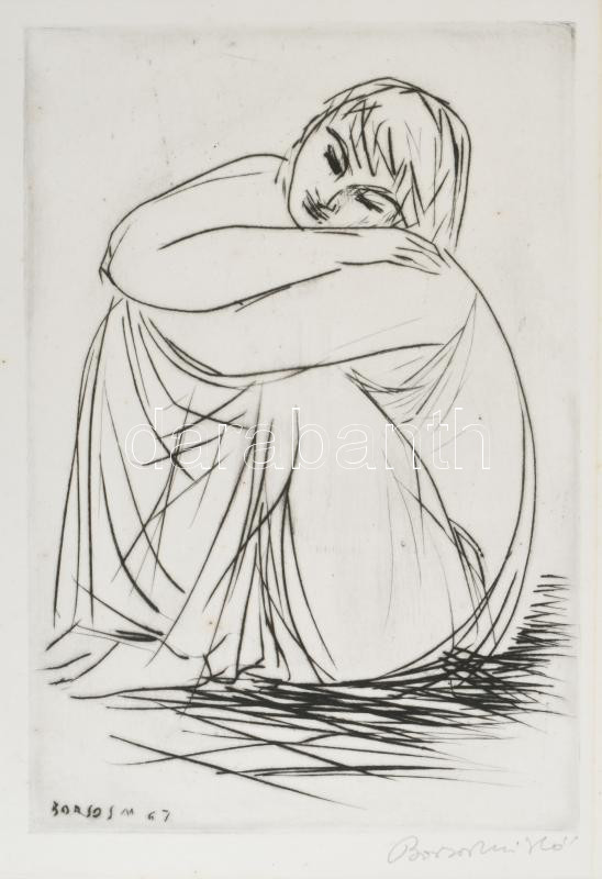 Borsos Miklós (1906-1990): Lány. Hidegtű, papír, jelzett, paszpartuban, 29x19,5 cm