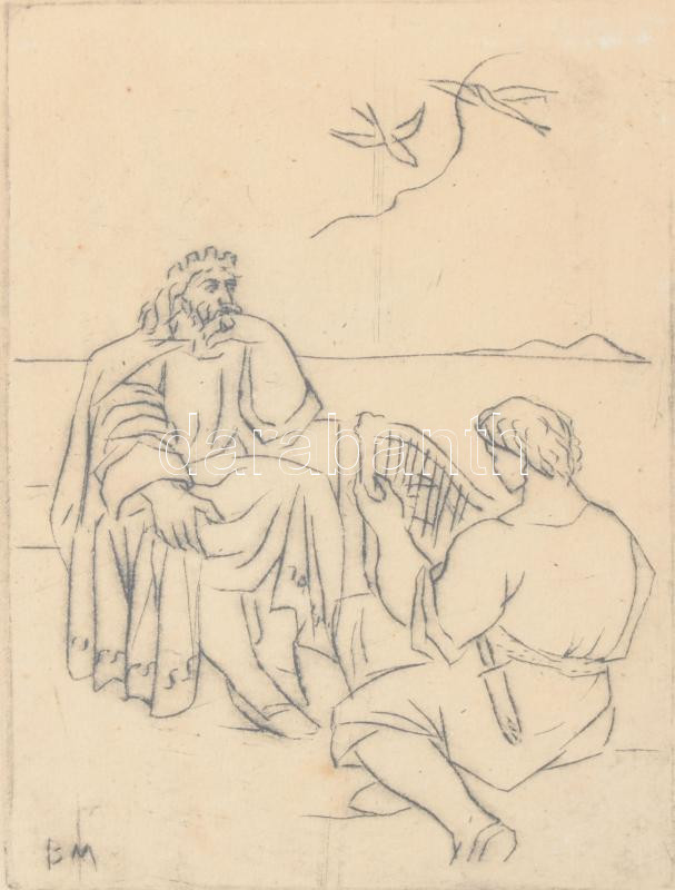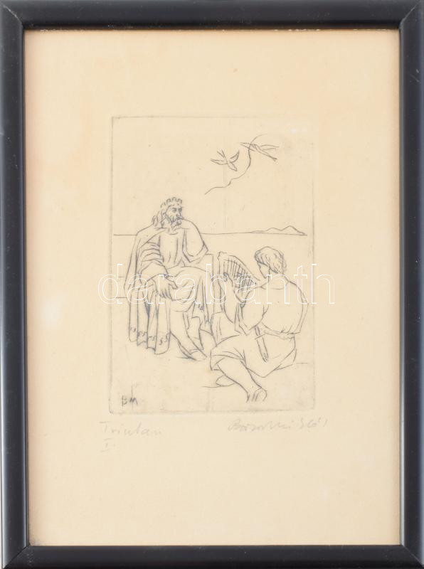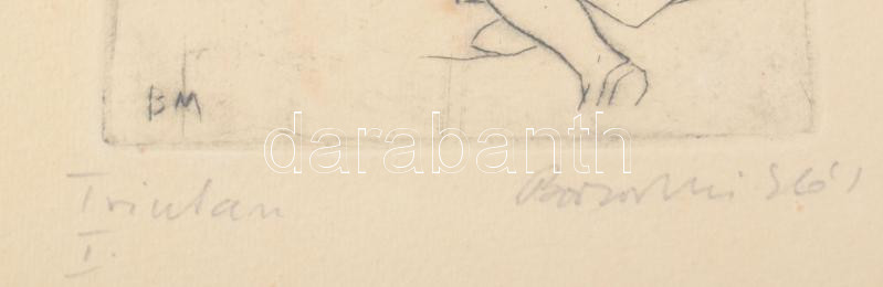 Borsos Miklós (1906-1990): Tristan I. Rézkarc, papír, jelzett, üvegezett fakeretben, 13,5x9 cm