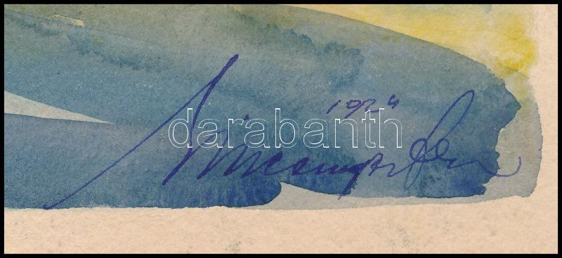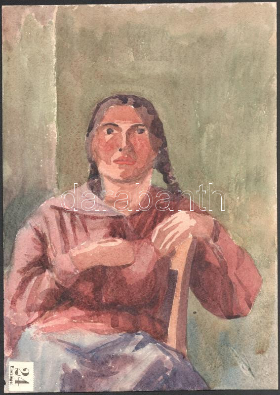 Einczinger Ferenc (1879-1950): Színes táj (Esztergom környéke?), 1924. Akvarell, papír, jelzett. Kétoldalas mű, hátoldalán női portré. 24,5x35 cm