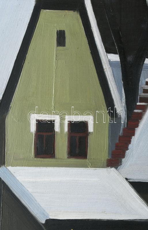 Ircsik József (1932-1986): Tél. Olaj, farost, jelzett. Hátoldalán autográf felirattal. Fakeretben, 40×55 cm