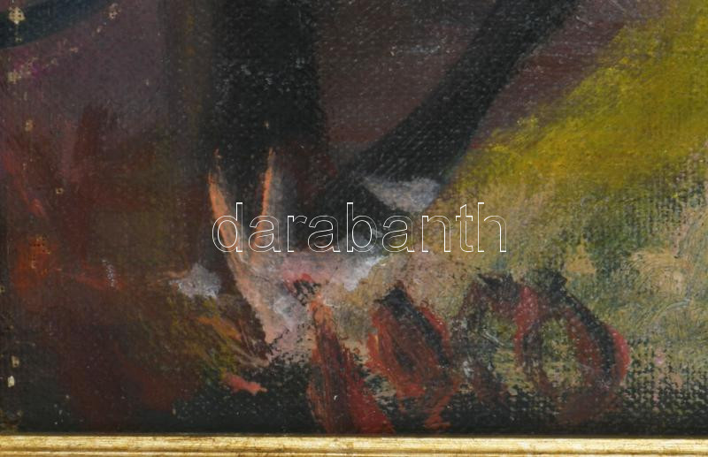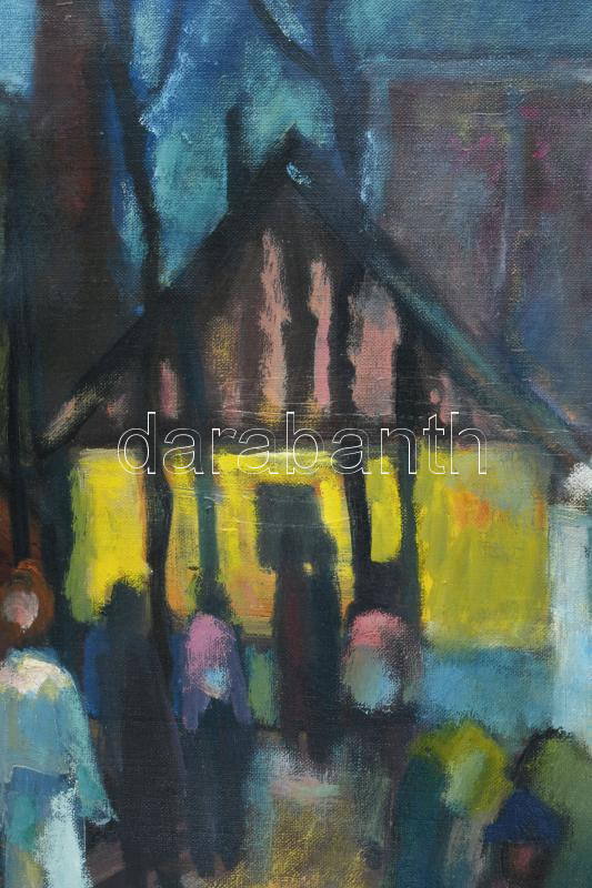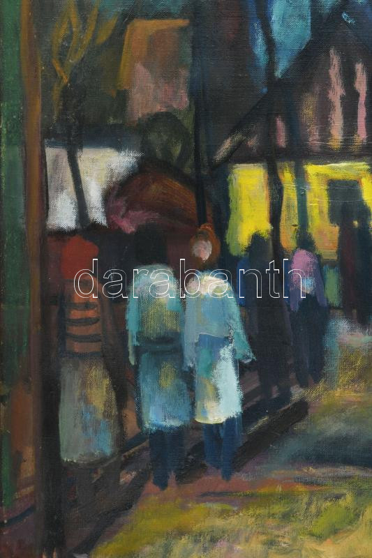 Kecskeméti István (1932-2006): Piac. Olaj, vászon. Jelezve balra lent. Fakeretben. 100x90 cm