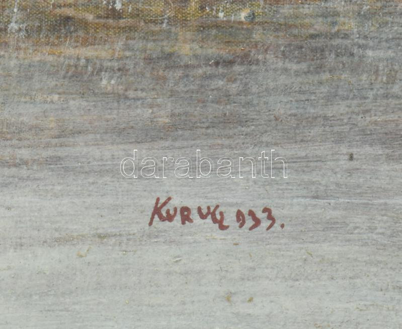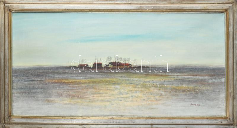 Kurucz D. István (1914-1996): Tanya. Olaj, vászon, jelezve jobbra lent, fakeretben, 40x81 cm