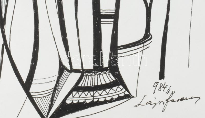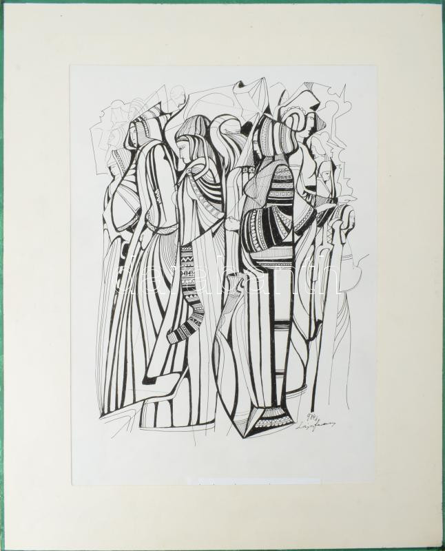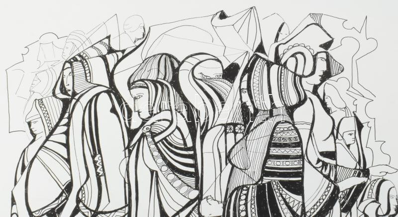 Lajos Ferenc (1912-1998): Búcsú a székelyéknél, 1984. Tus, papír, jelzett. 37x27 cm. Paszpartuban.