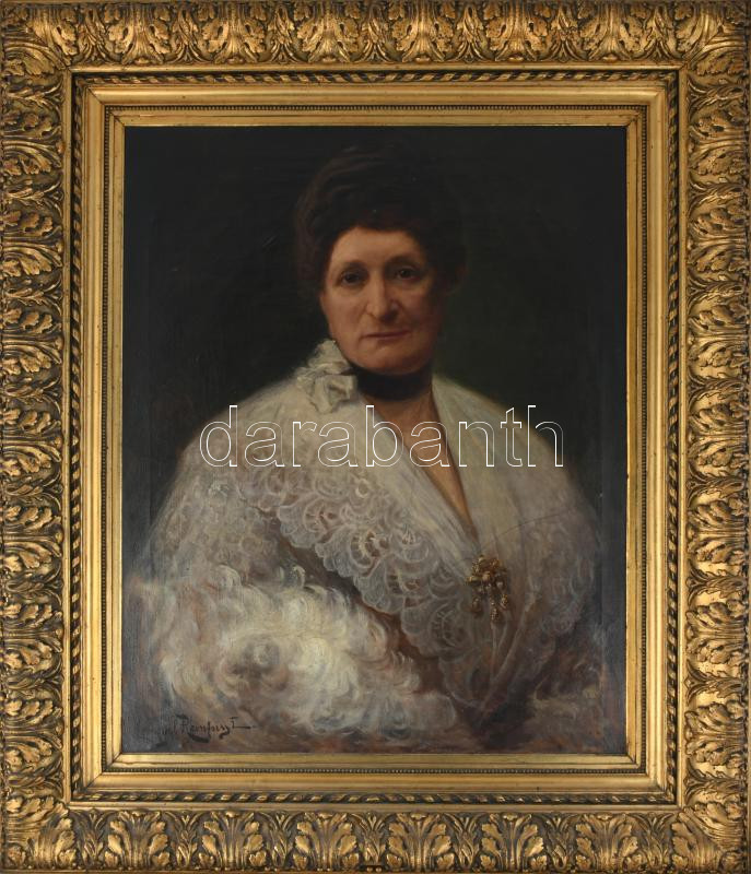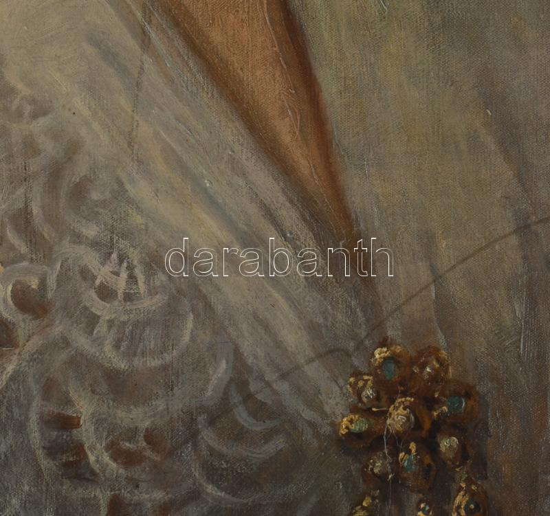 Lengyel-Reinfuss Ede (1873-1942): Melczer bárónő, a kékedi Melczer kastély úrnője portréja hermelinben és brossban. Olaj, vászon, jelezve balra lent. Dekoratív fakeretben, 74×60 cm. / oil on canvas, signed, framed. KIZÁRÓLAG SZEMÉLYES ÁTVÉTEL, NEM POSTÁZZUK! / ONLY PERSONAL COLLECTION AT OUR OFFICE!