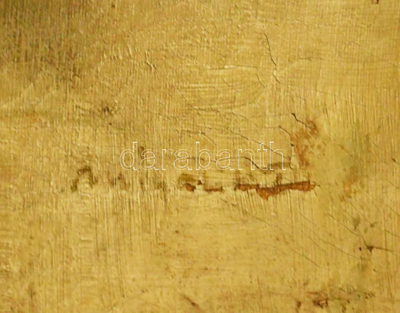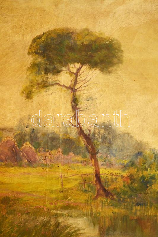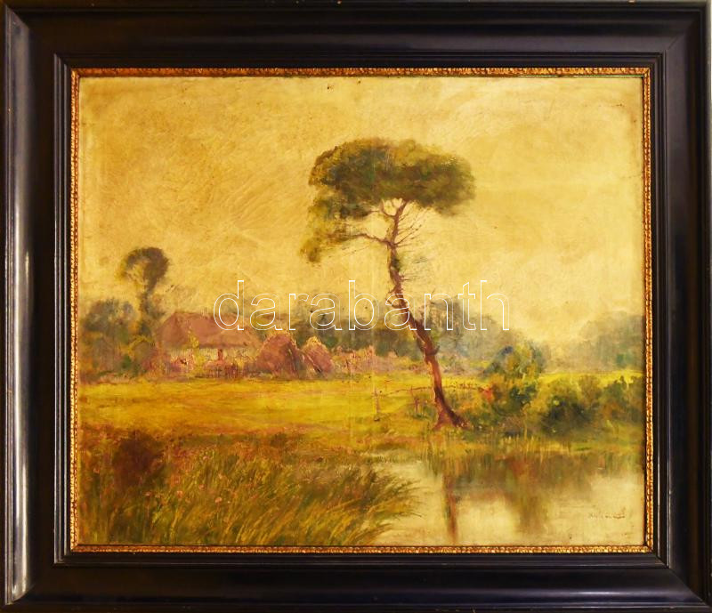Mihalik Dániel (1869-1910): Vízparti tanya. Olaj, vászon, jelezve jobbra lent. Javított. Kisebb sérülésekkel. Dekoratív, antik fakeretben. 79x95 cm KIZÁRÓLAG SZEMÉLYES ÁTVÉTEL, NEM POSTÁZZUK! / ONLY PERSONAL COLLECTION AT OUR OFFICE