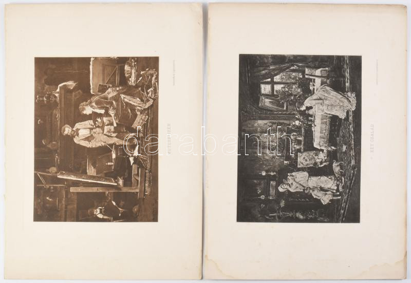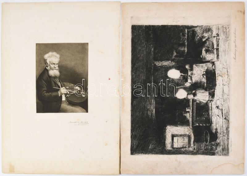 Munkácsy Mihály (1844-1900): Konyhában, rézkarc, papír, jelzett a karcon, 20×26 cm + 3 db Munkácsy kép reprodukció
