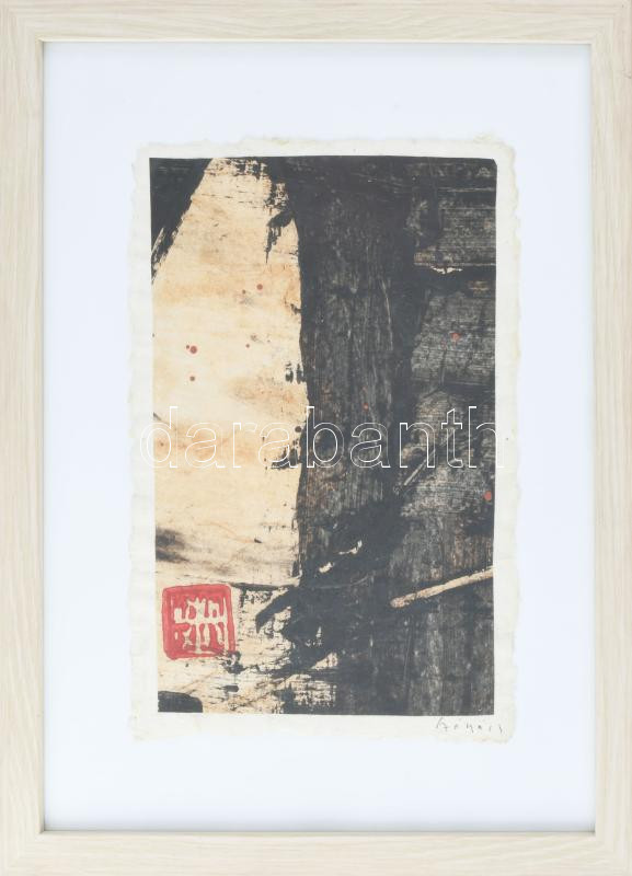 Székács Zoltán (1954-): "Erdő". Akril, merített papír, jelezve jobbra lent, a hátoldalán autográf felirattal. Plexiüvegezett fakeretben, 27,5×18 cm.