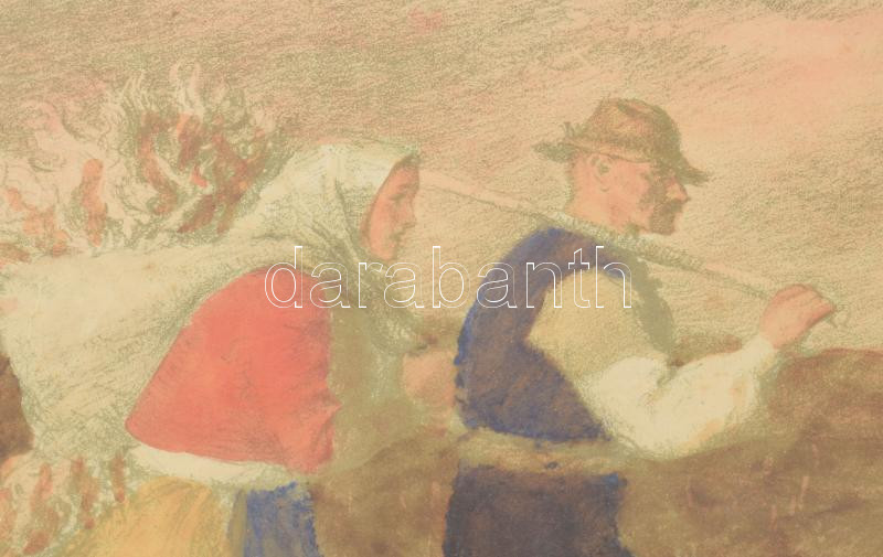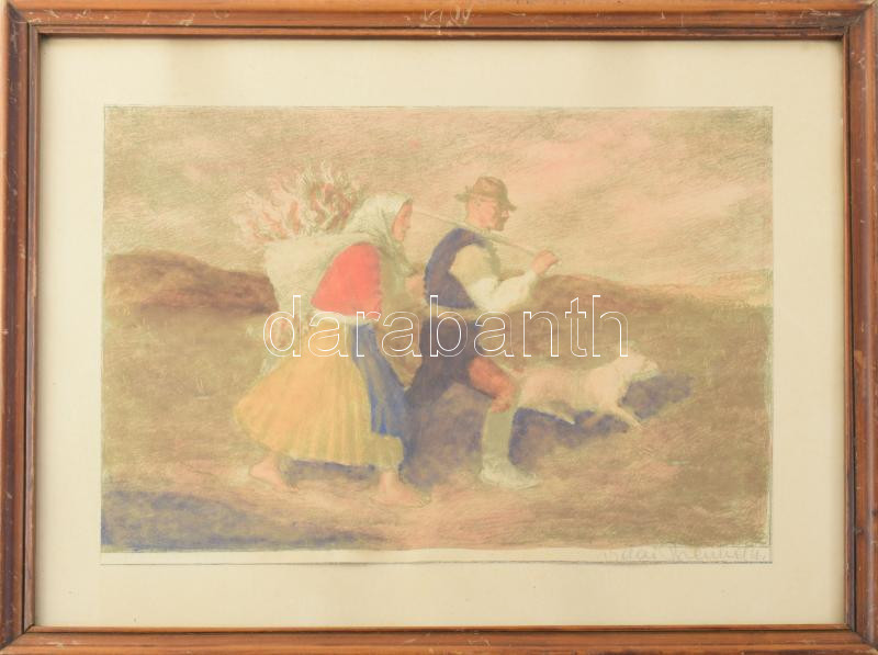 Vidai Brenner Nándor (1903-?): Hazafelé. Litográfia, papír, jelzett. Lap széle vágott. Üvegezett fakeretben, 24×35 cm