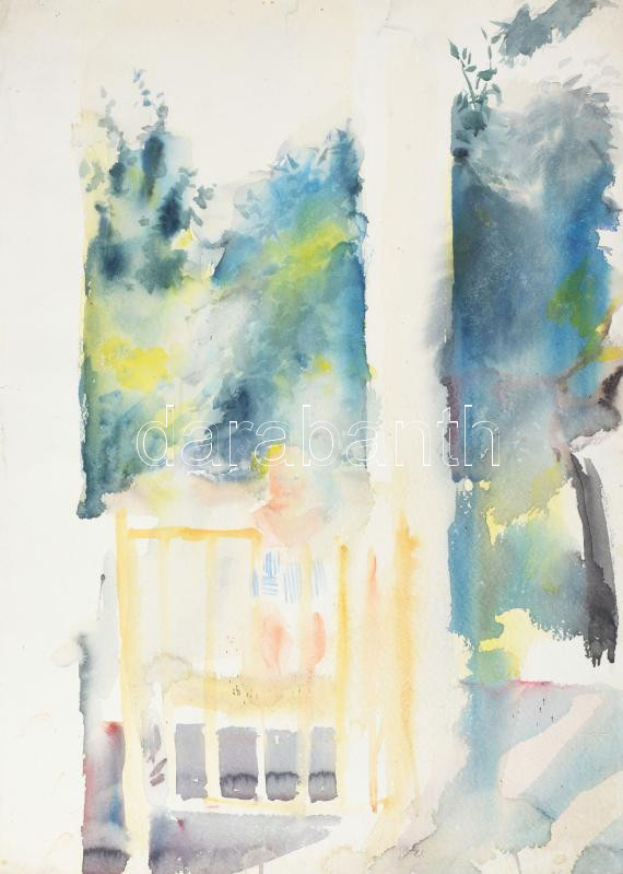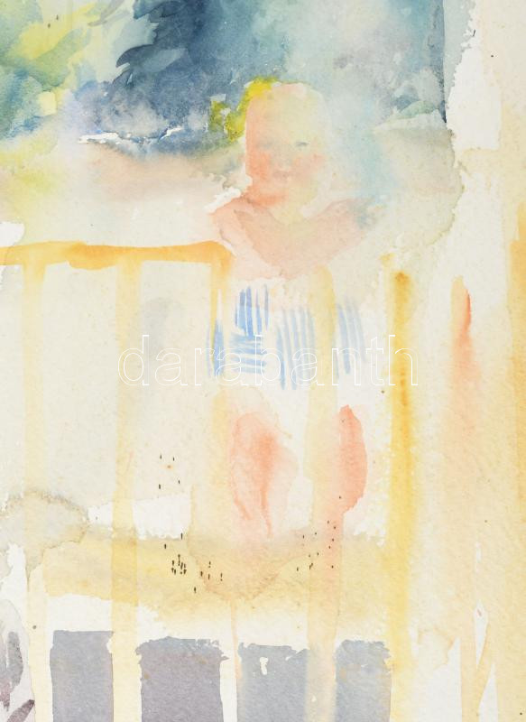 Vinkler László (1912-1980): Kisgyerek a kertben. Akvarell, papír, jelzés nélkül, hátoldalán hagyatéki igazolás, lapszéli részben javított szakadásokkal, 55×41 cm