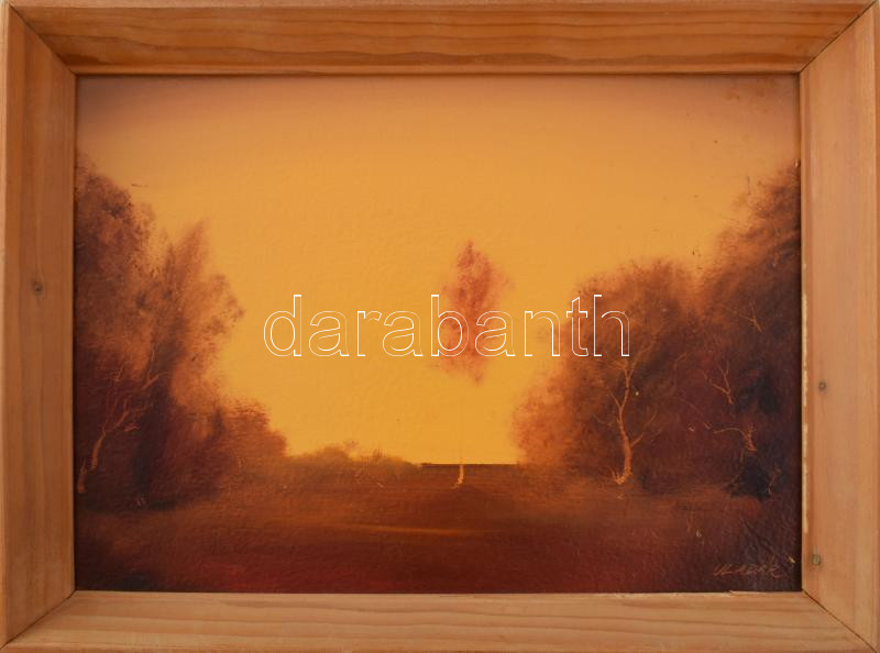Vladár László (1958-): Határban. Olaj, karton, jelzett, fakeretben, 25x35 cm