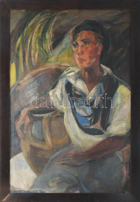 Walderné Unger Margit (1881-?): Fiúportré. Olaj, vászon, jelezve balra lent. Hátoldalán régi töredékes raglappal. Apró sérülésekkel. Fakeretben. 94x63,5 cm KIZÁRÓLAG SZEMÉLYES ÁTVÉTEL, NEM POSTÁZZUK! / ONLY PERSONAL COLLECTION AT OUR OFFICE