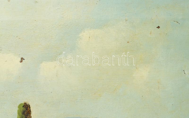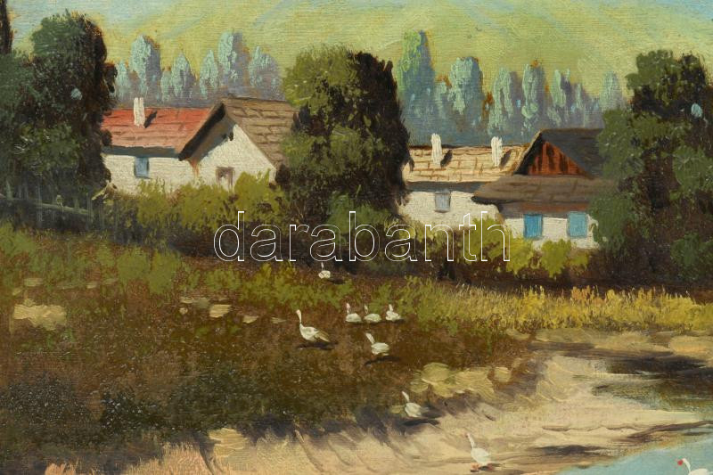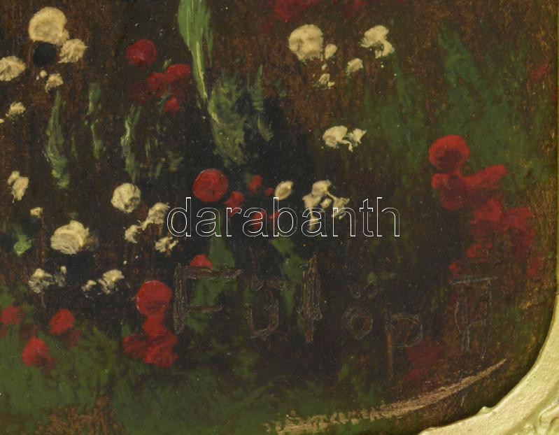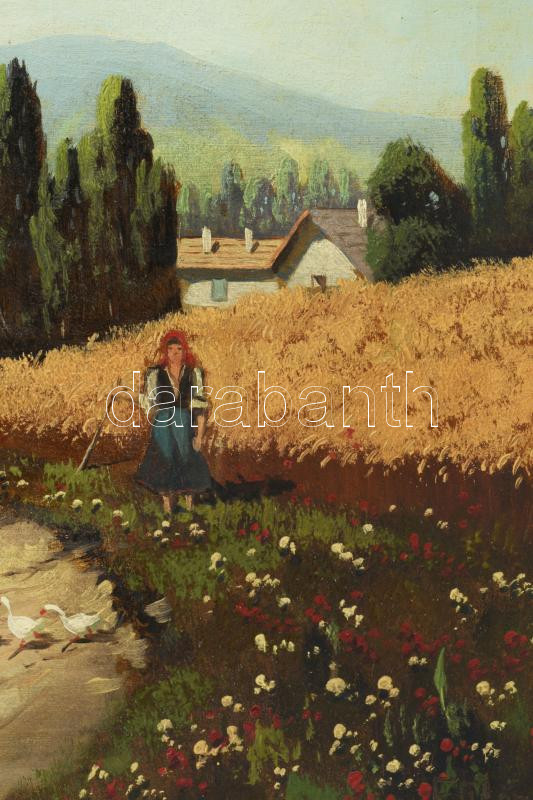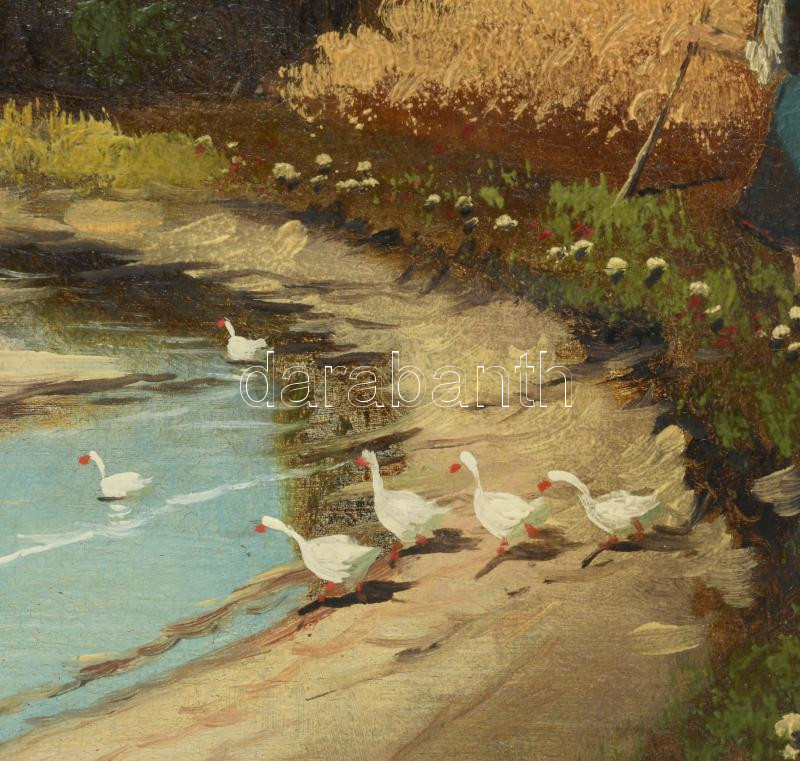 Fülöp F jelzéssel: Libapásztorlány. Olaj, vászon. Javított. Kissé sérült. Dekoratív, antik, kissé sérült fakeretben, 66×81 cm
