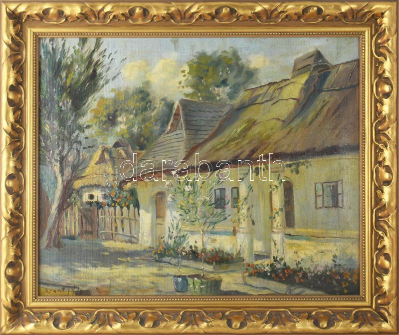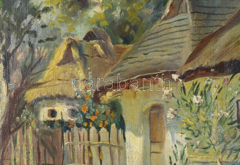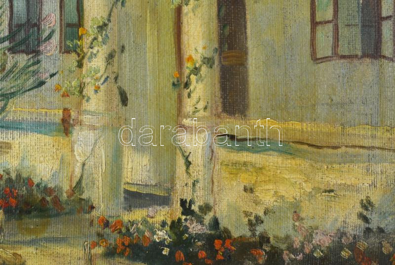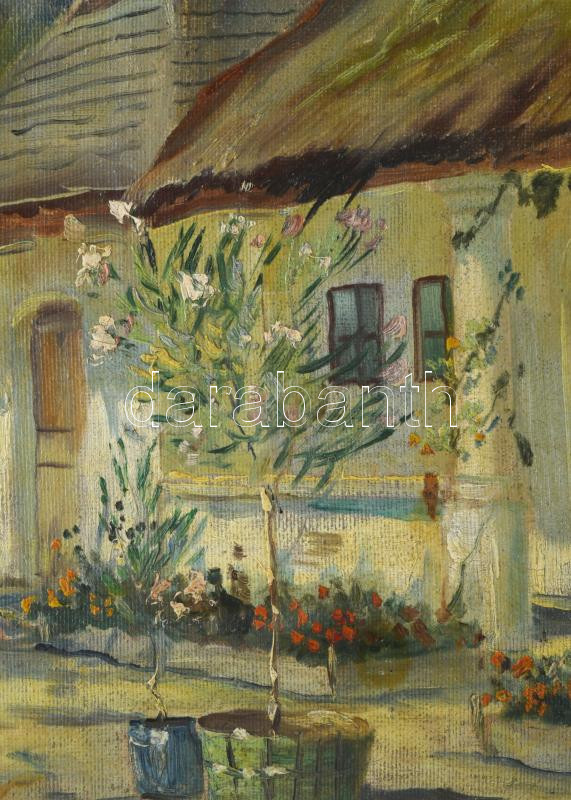 Szentgály jelzéssel: Virágos udvar. Olaj, vászon. Dekoratív fakeretben, 40×50 cm