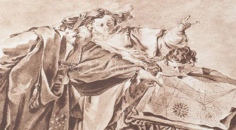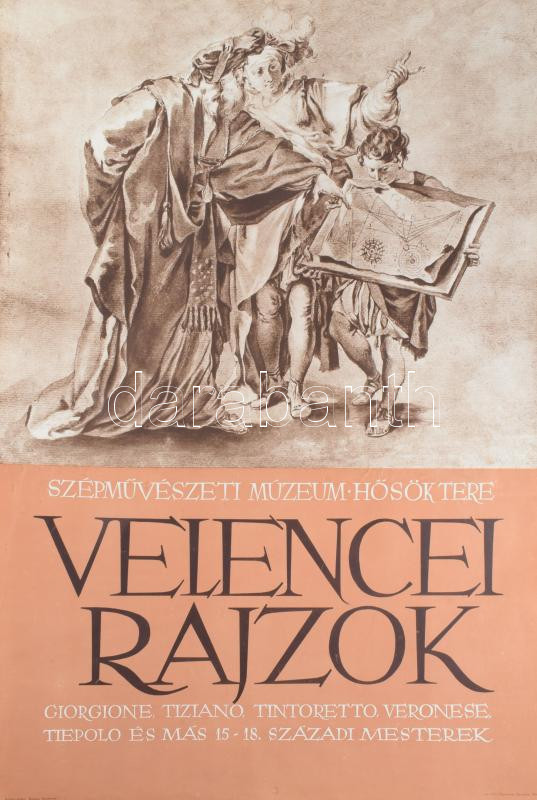 1960 Velencei rajzok, Giorgione, Tiziano, Tintoretto, Veronese, Tiepolo és más 15-18. századi mesterek, Szépművészeti Múzeum, kiállítási plakát, papír, Egyetemi Nyomda, aprólapszéli szakadásokkal, 82x56,5 cm