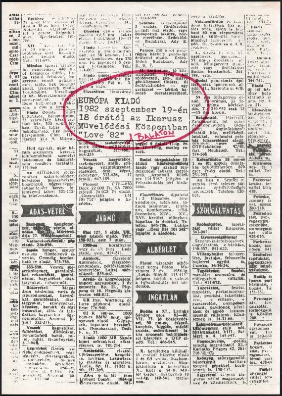 1982 Európa Kiadó, Ikarusz Művelődési Központ, underground-alternatív koncertplakát, papír, 41,5x29,5 cm
