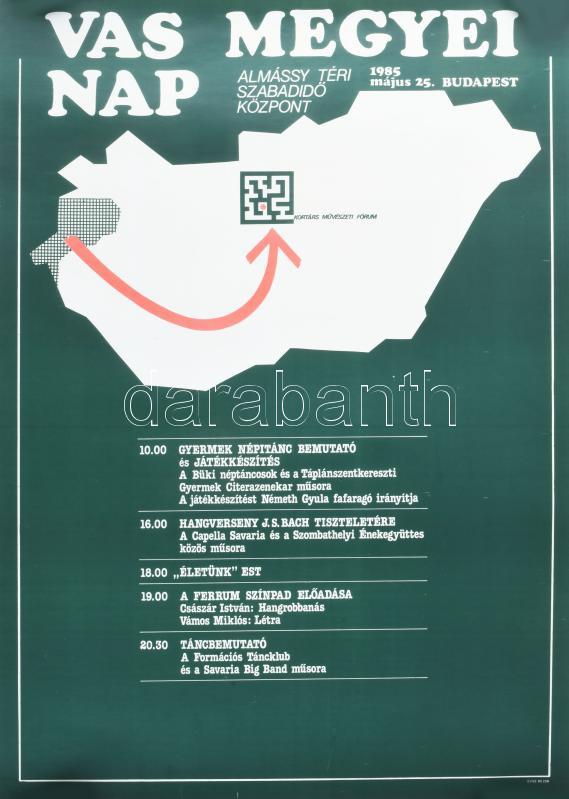 1985 Vas Megyei Nap, Almássy téri Szabadidő Központ, Bp., plakát, papír, feltekerve, 56×40 cm