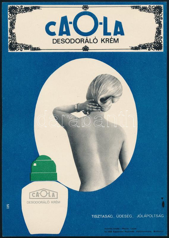 Müller Ilona (1929-2012): Caola desodoráló krém, 1966. Reklámplakát, villamosplakát, papír, jelzett a plakáton. Egyetemi Nyomda. 23,5x16,5 cm