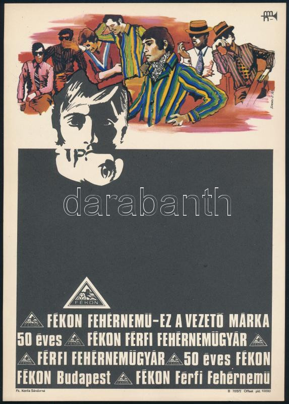 Simonyi Emő (1943-): Fékon fehérnemű - ez a vezető márka, 1970, divatplakát, villamosplakát, ofszet, papír, jelzett a plakáton, Offset Nyomda, 24x17 cm. Magyar pop art plakát!