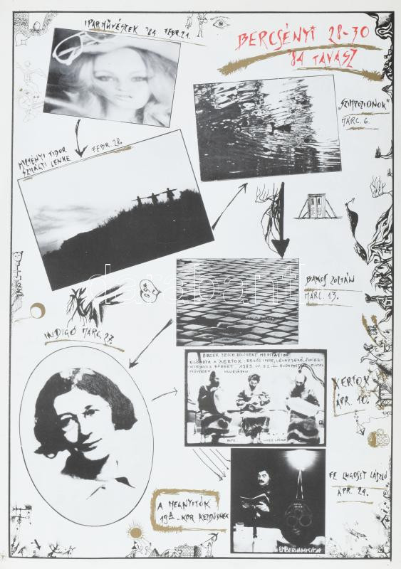 Swierkiewicz Róbert (1942-2019): Bercsényi 28-30, '84 tavasz (Xertox, Felugossy László stb.). Kétoldalas plakát, nyomat, papír, jelzés nélkül, 43,5×34 cm