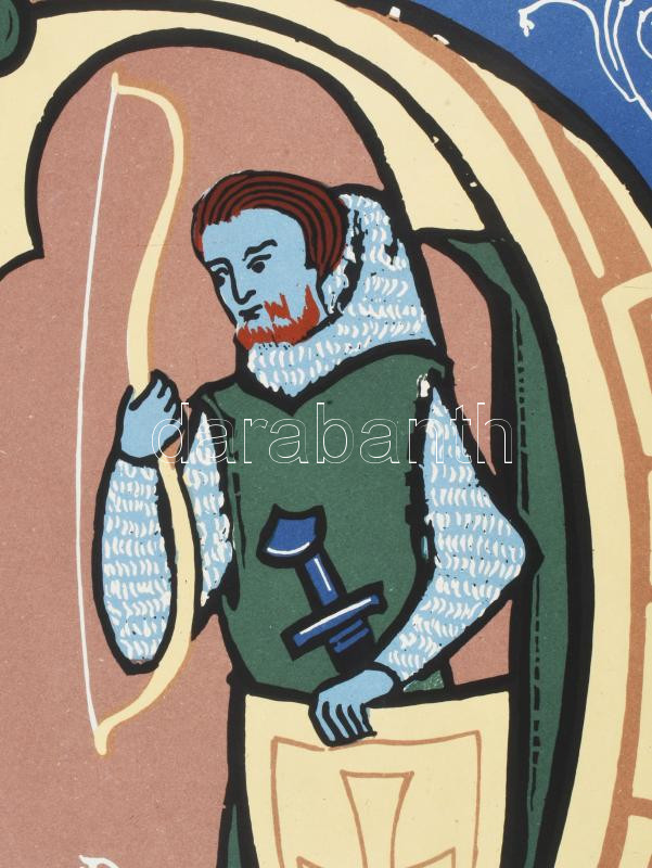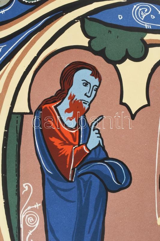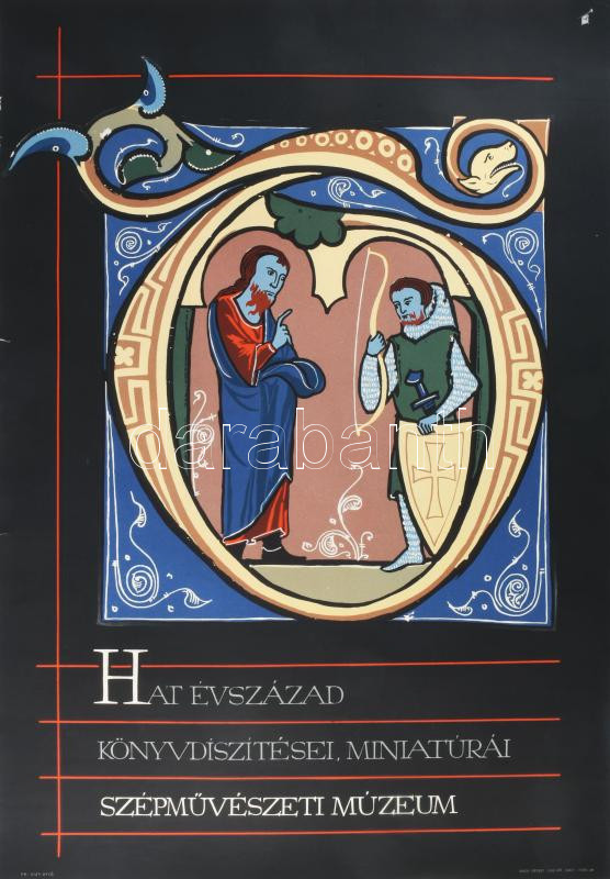 cca 1966 Hat évszázad könyvdíszítései, miniatúrái, Szépművészeti Múzeum. kiállíátisi plakát, ofszet, papír, jelzés nélkül, Offset Nyomda, lapszéli kisebb sérülésekkel, 82x56,5 cm