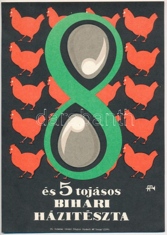 cca 1969 8 és 5 tojásos bihari száraztészta, reklámplakát, villamosplakát, papír, jelzés nélkül, 24x17 cm