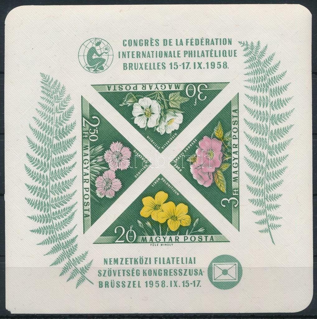 1958 FIP (I.) - Virág (I.) vágott blokk (18.000) (sarokhiba / corner fault)