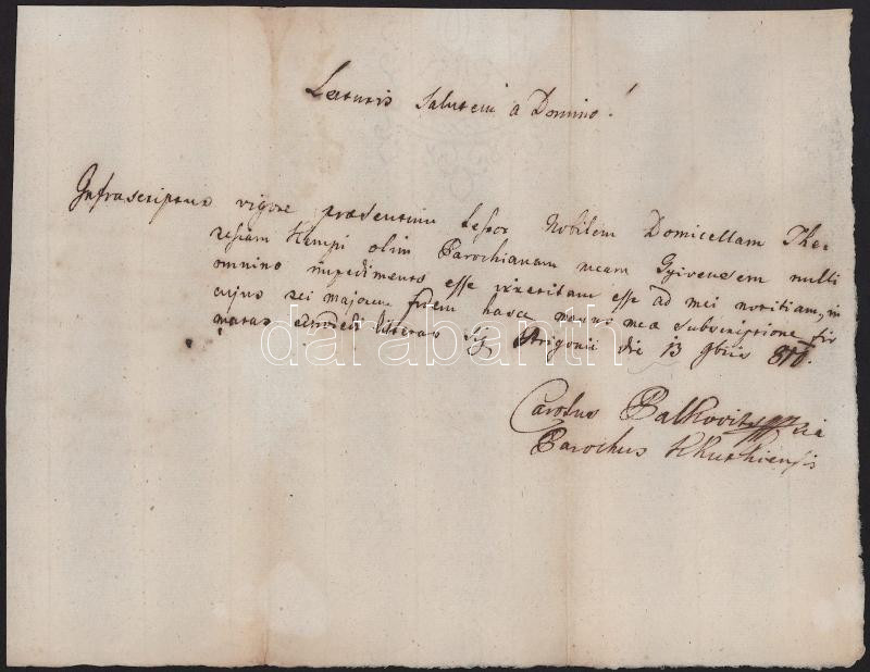1810 Esztergom, Palkovits Károly saját kézzel írt sorai