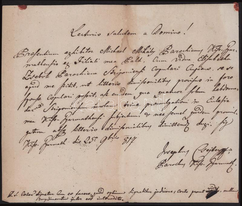 1817 Kisgyarmat, Csejtey József saját kézzel írt sorai