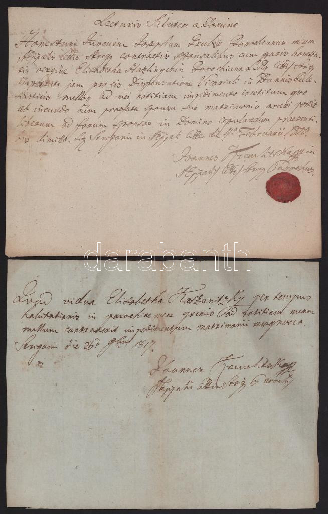 1810/1817 Esztergom, Szremniczkay János 2 db irata, egyik pecséttel