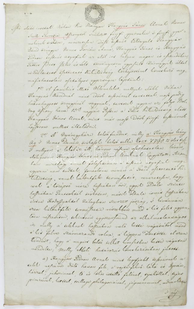 1832 Nyáregyháza, Osztálylevél Id. Hangyás János örökösei közt, 6 kr. szignettával 6 beírt oldalon