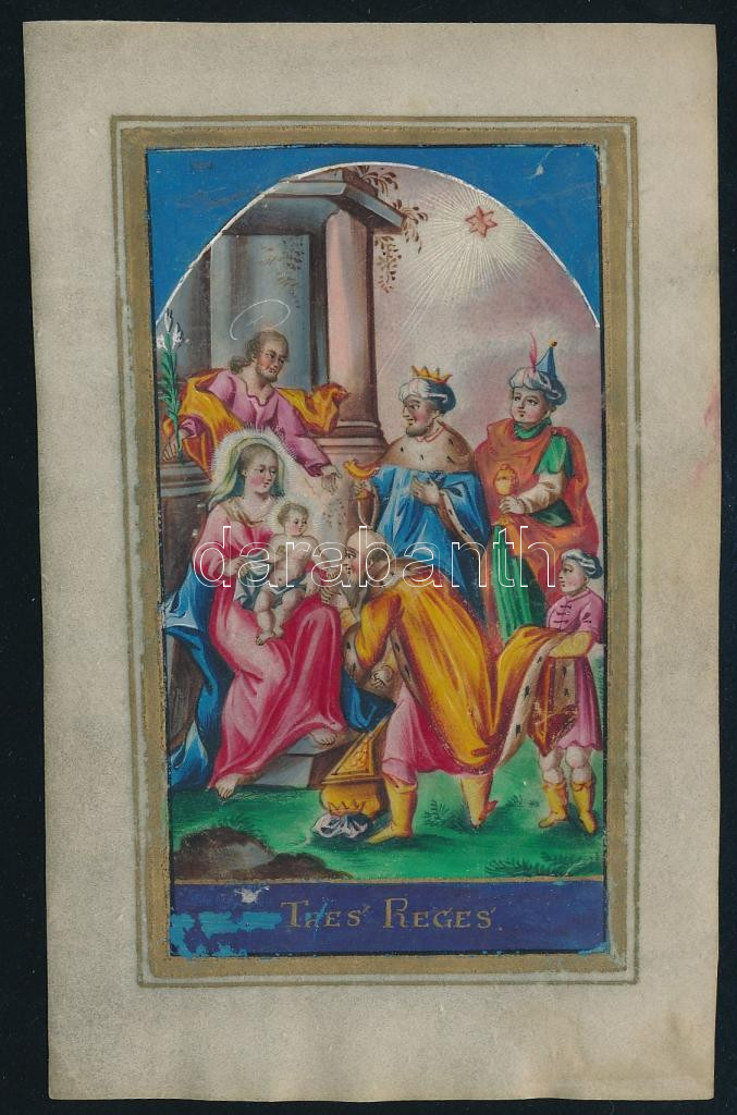 ca 1800 Három királyok. Kézzel festett szentkép 9x13,5 cm