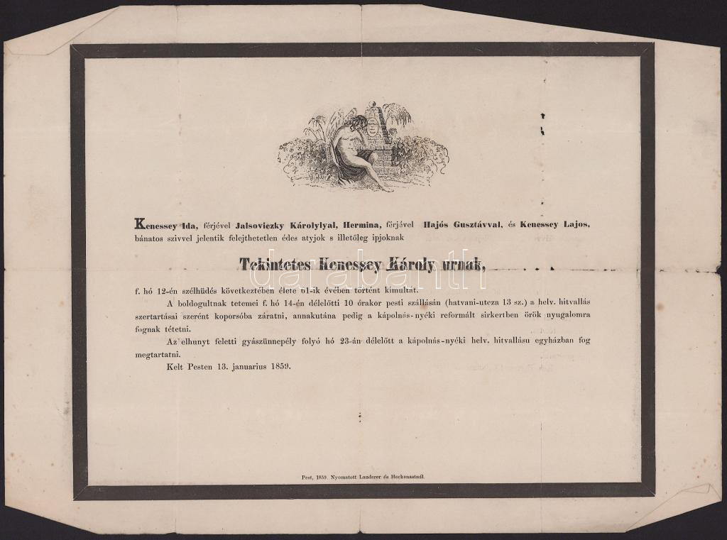 1859 Kenessey Károly halálozási értesítője