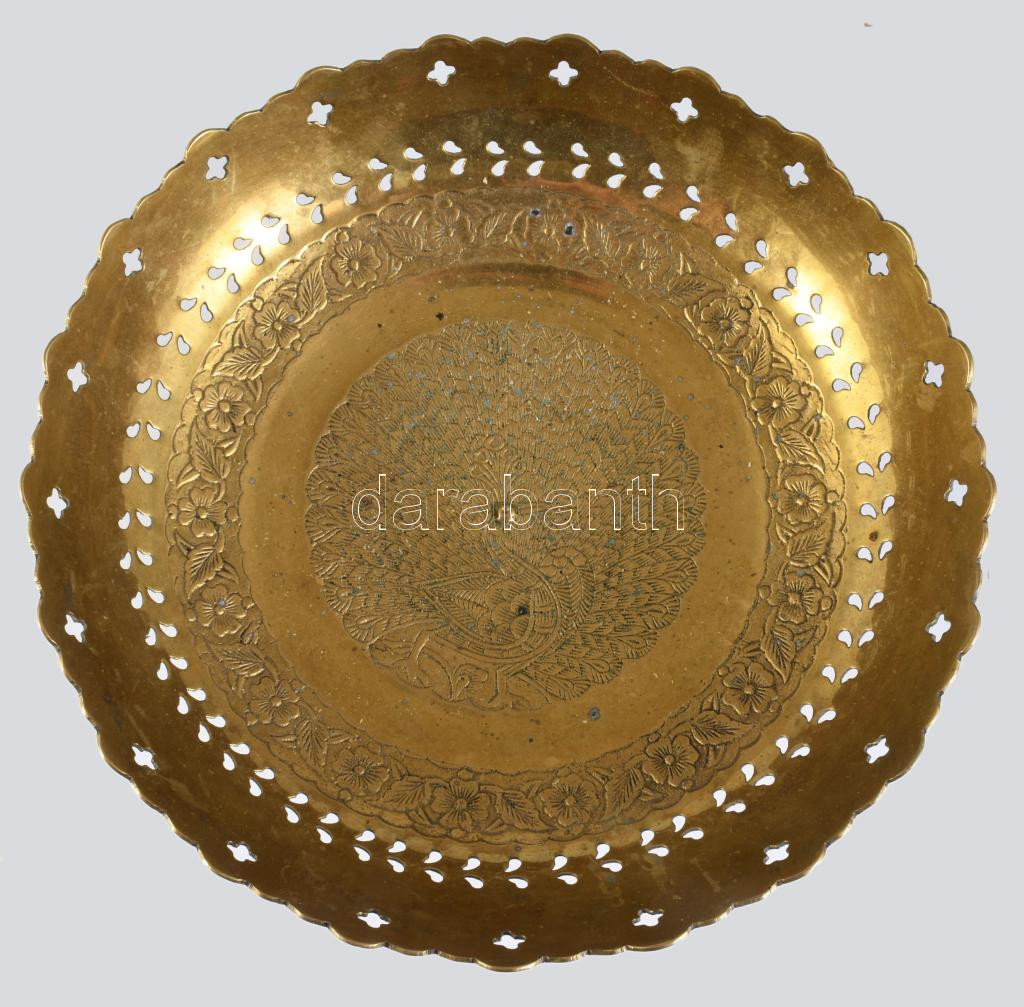 Pávás, réz kínáló d: 29 cm