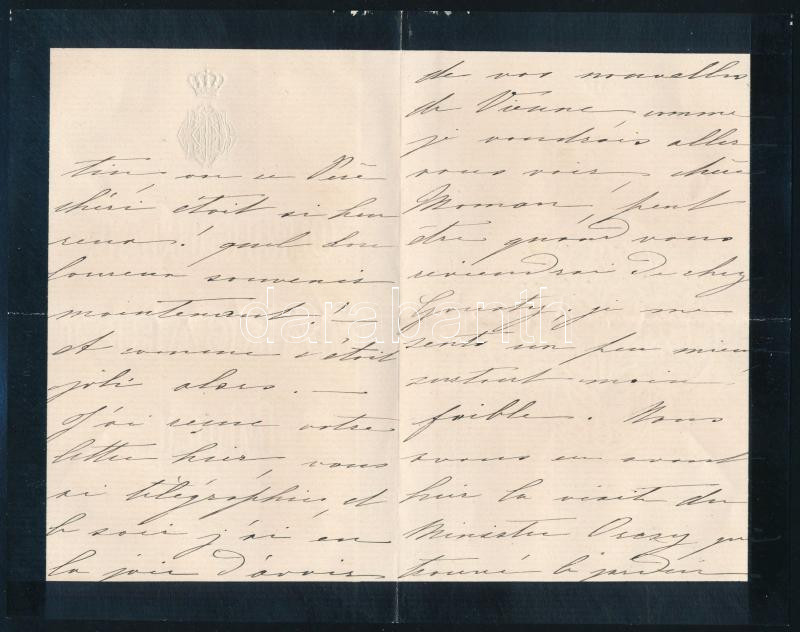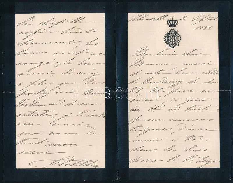 1882 Szász-Coburg-Koháry Klotild főhercegnő (1846-1927), József főherceg felesége, autográf levele az alcsúti kastélyból édesanyjának Clémentine d?Orléans francia királyi hercegnőnek, francia nyelven, saját levélpapírján.