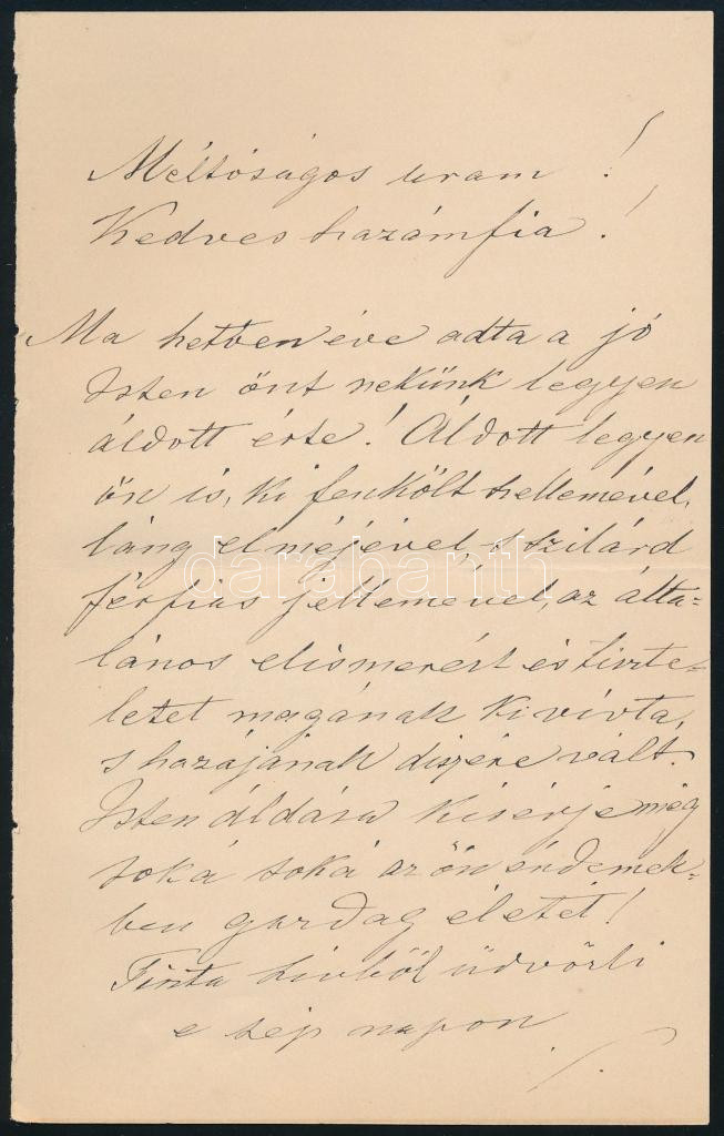 1898 Felekiné Munkácsy Flóra (1836-1906) színésznő saját kézzel írt levele Falk Miksa özvegyéhez