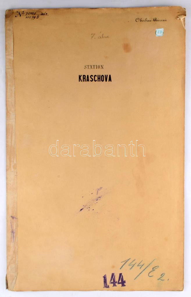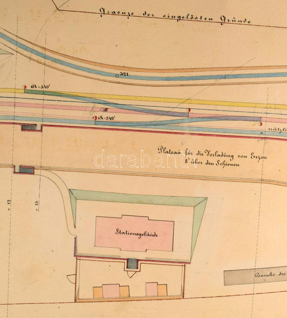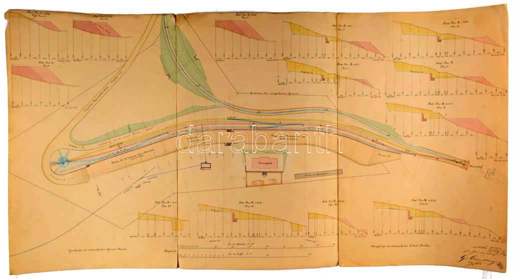 1863 Large colored plan of the Krassó / Kraschova Banat railway station. 74x40 cm