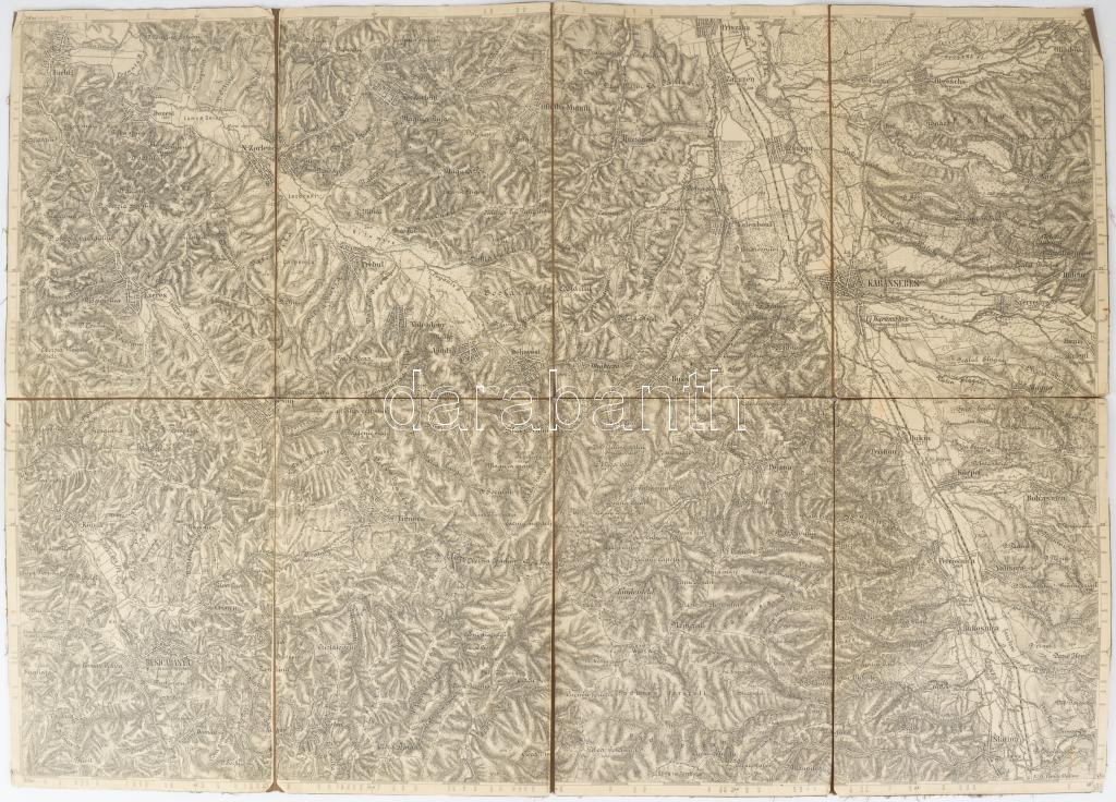 Karánsebes és Resicabánya környéki térkép vászonra kasírozva 54x38 cm