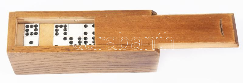 Miniatűr domino készlet, fa dobozban, h: 10 cm