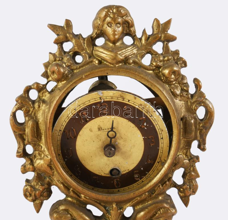 Anti figurális díszítésű bronz asztali óra, m: 27 cm