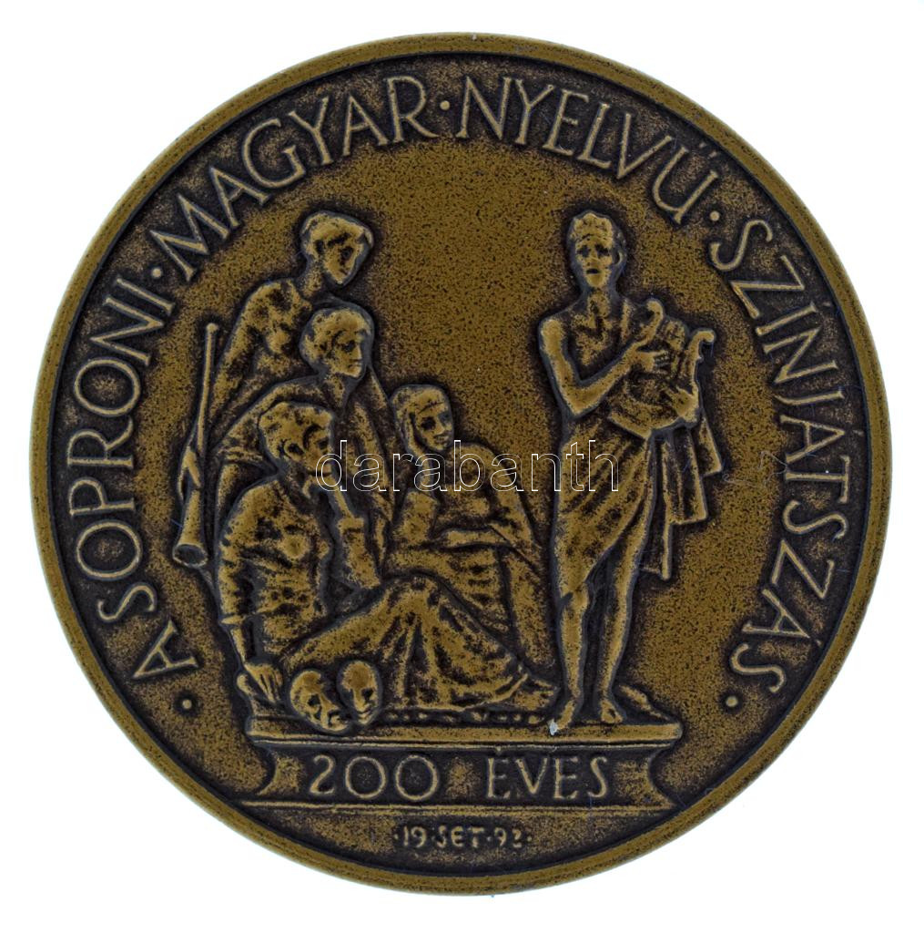 1992. "200 éves a soproni magyar nyelvű színjátszás / Petőfi Színház Sopron" bronz emlékérem műanyag tokban (42,5mm) T:AU