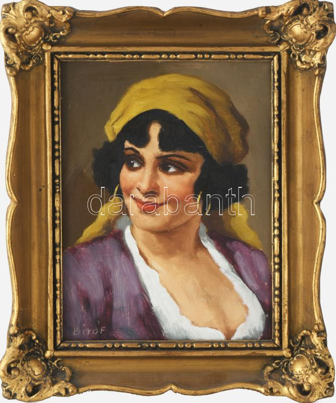 Bíró F. (Ferenc?) jelzéssel, XX. sz. első fele: Menyecske. Olaj, fa. Dekoratív fakeretben, 24x18 cm
