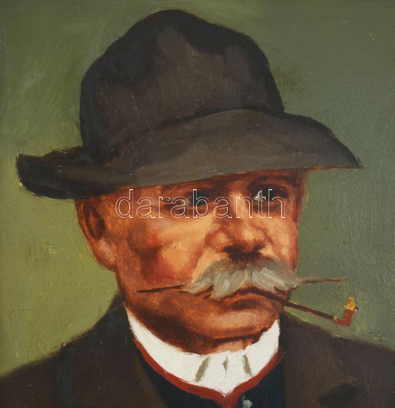 Bíró F. (Ferenc?) jelzéssel, XX. sz. első fele: Pipázó. Olaj, fa. Dekoratív fakeretben, 24x18 cm