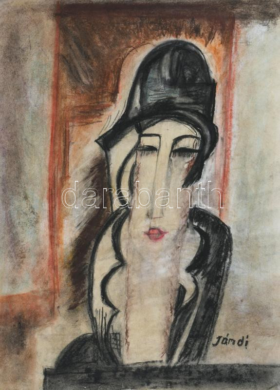 Jándi jelzéssel: Arckép. Vegyes technika, papír, 42x29,5 cm