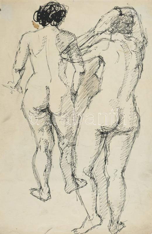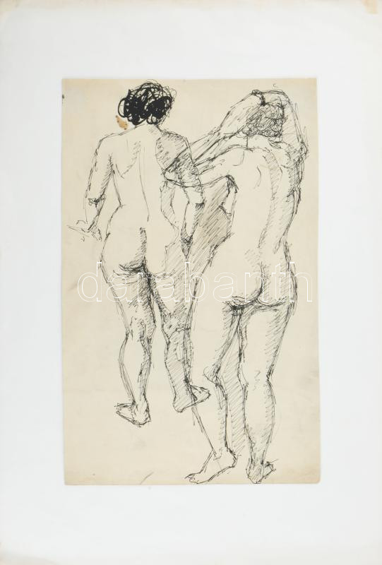 Jelzés nélkül, kétoldalas mű: Női hátaktok és arckép. Tus, ceruza, papír. Hátoldalán paszpartuzás nyomaival. 30x19,5 cm