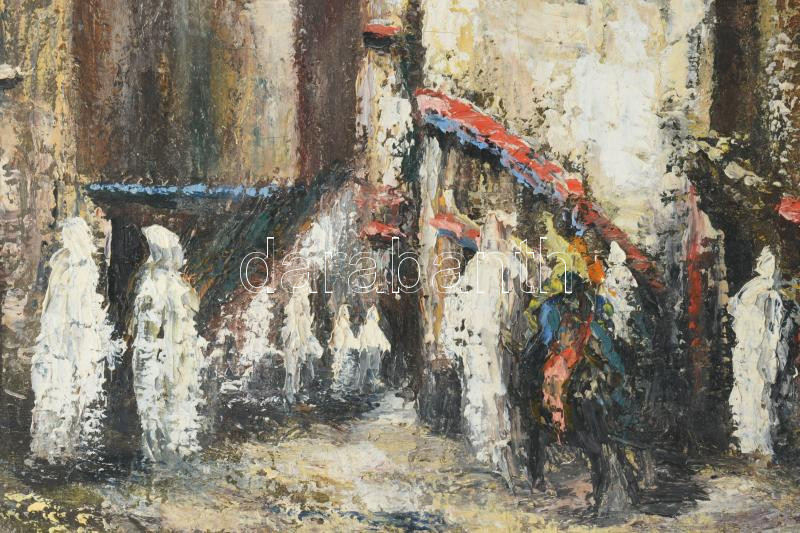Olvashatatlan jelzéssel (Camille Vailet?), XX. sz. második fele: Medina kapujában. Olaj, vászon. 46x55 cm