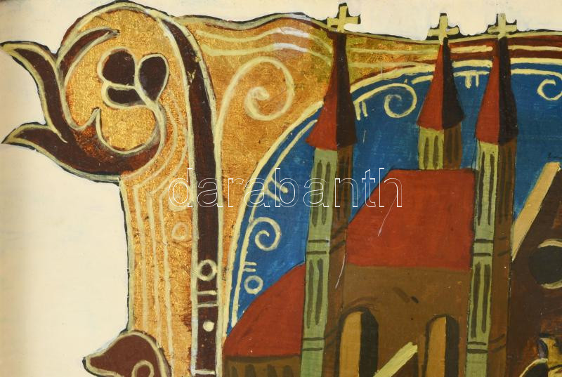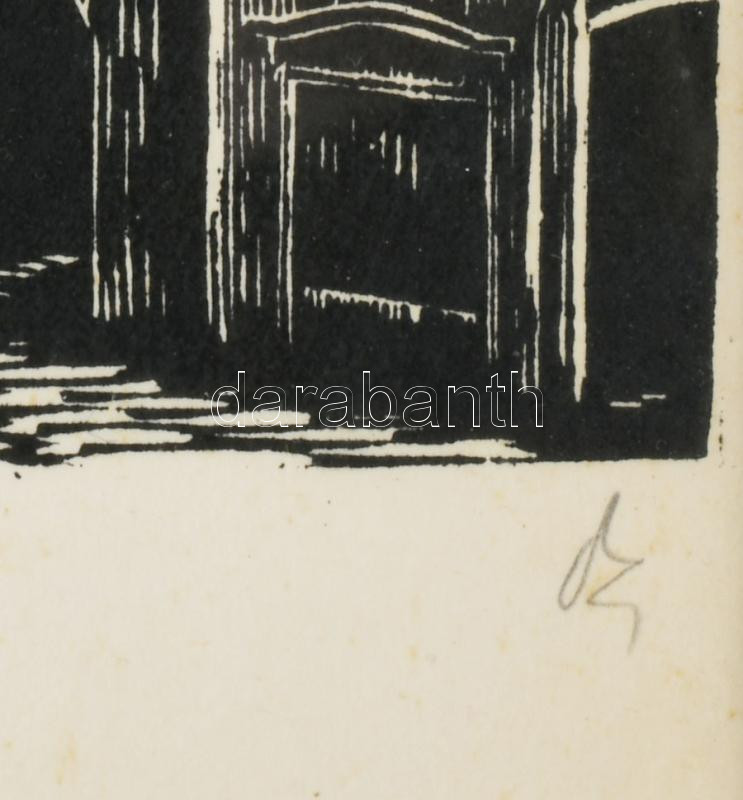 Olvashatatlan jelzéssel, erdélyi magyar grafikus: Városrészlet (Marosvásárhely?). Fametszet (kézi levonat), papír, üvegezett fakeretben, hátoldali felirat szerint Sütő András író ajándéka, 27,5x23 cm