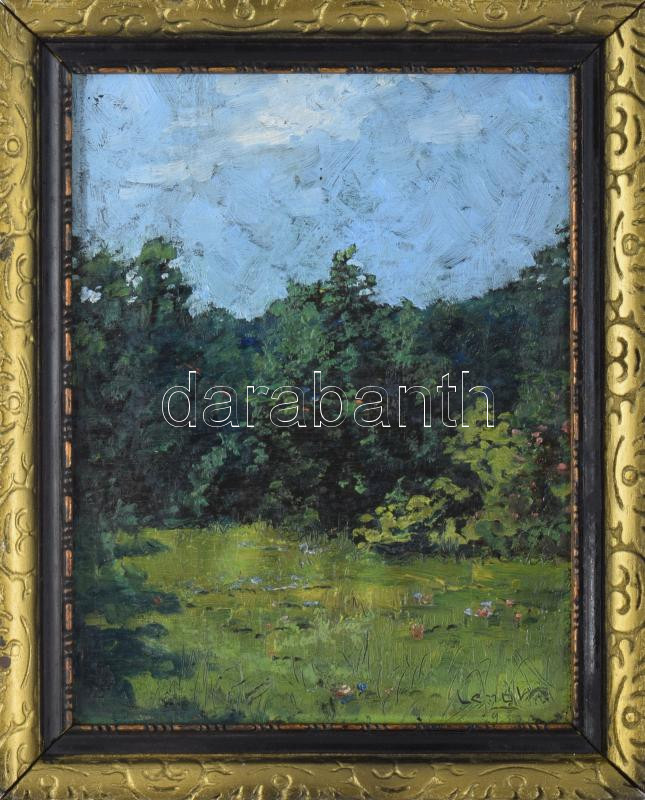 Lénárdt (?) jelzéssel (Lénárd Lévy Róbert?): Napfényes tisztás, 1930. Olaj, fa, jelzett. Dekoratív fakeretben. 33,52x25,5 cm