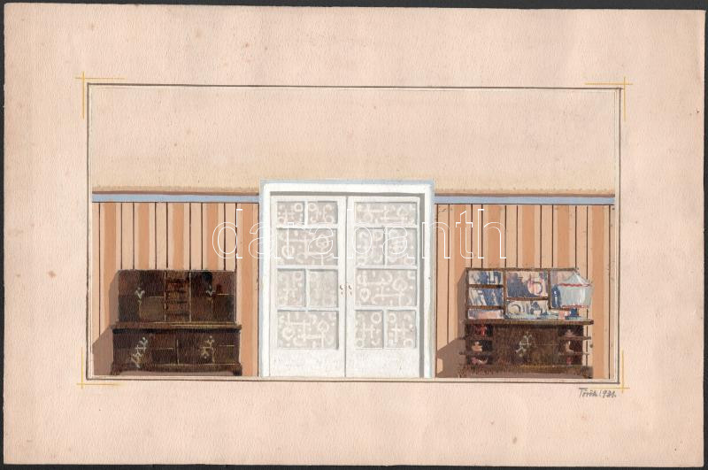 Török jelzéssel: Enteriőrterv, 1931. Tempera, papír, 17x30 cm