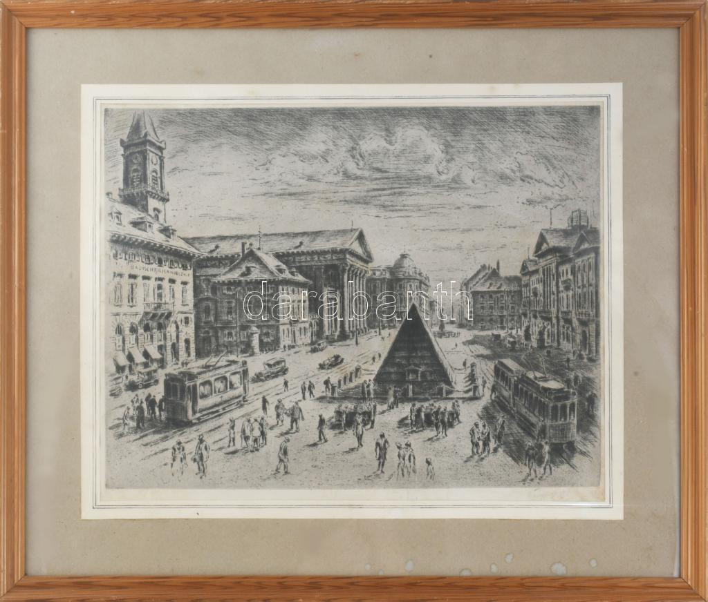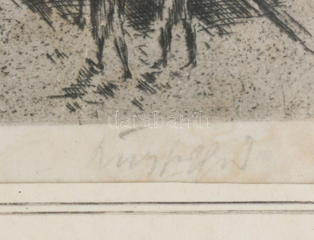 Olvashatatlan jelzéssel: Karlsruhe, részlet, 1920-40 körül. Rézkarc, papír. Üvegezett fakeretben, 31×40 cm