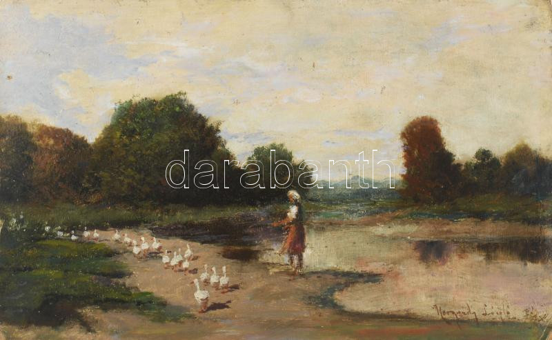 Neogrády László jelzéssel: Libapásztorlány. Olaj, karton. 20x31,5 cm